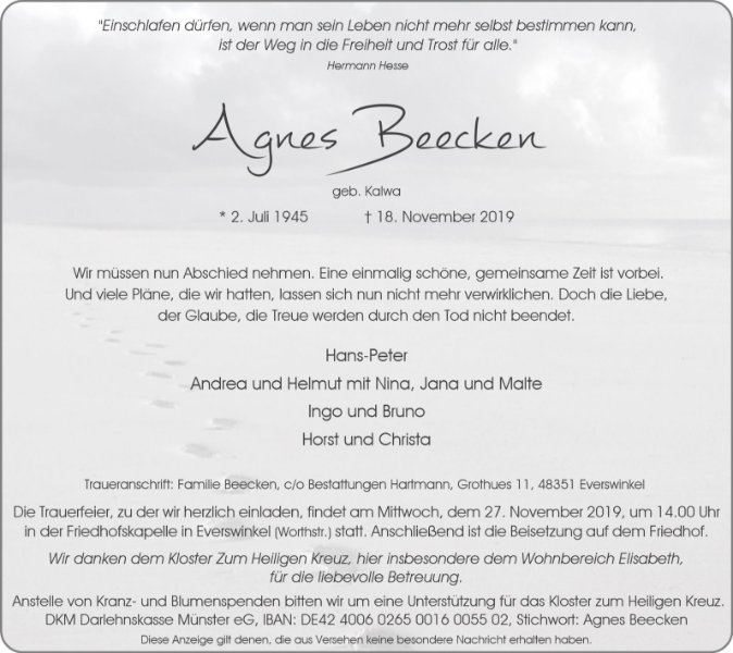 Trauerfeier mit anschl. Urnenbeisetzung, Everswinkel