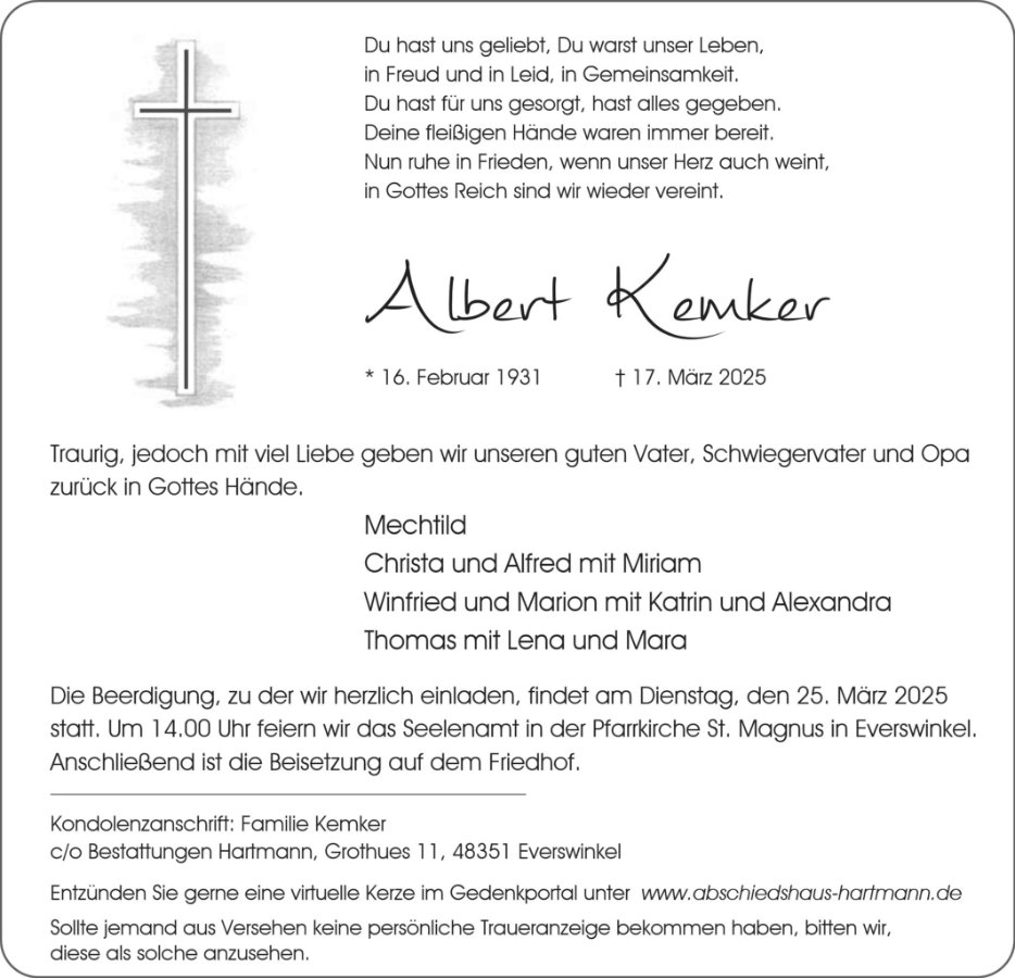 gestorben am 17. März 2025 in Telgte