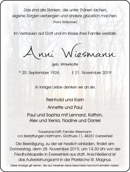 gestorben am 21. November 2019 in Münster-Hiltrup