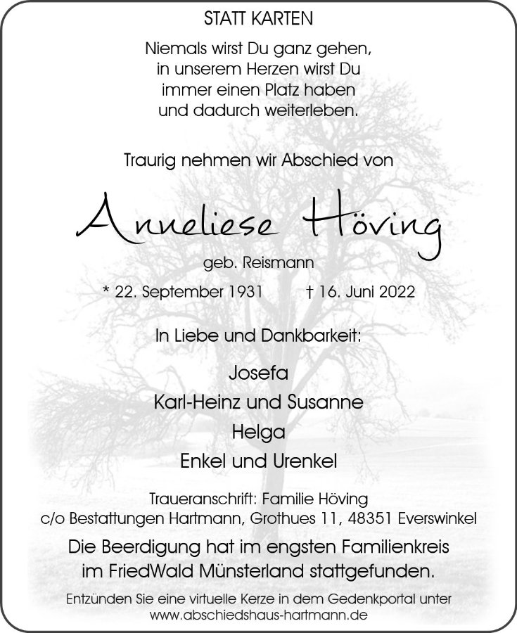 Anneliese Hövinggestorben am 16. Juni 2022