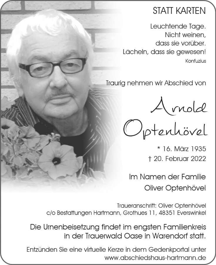 Arnold Optenhövelgestorben am 20. Februar 2022