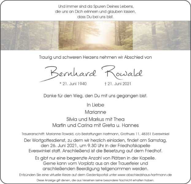 Liebe Marianne , liebe Familie Rowald