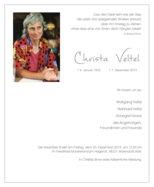 wir wünschen Ihnen von Herzen viel Kraft, dass Sie Menschen um sich haben, die Ihnen in dieser schweren Zeit beistehen und Halt geben. Zusätzlich können Sie auf dieser Gedenkseite Erinnerungen teilen und so das Andenken gemeinsam wachhalten.