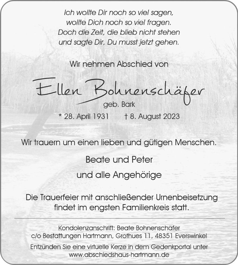 Ellen Bohnenschäfergestorben am 8. August 2023