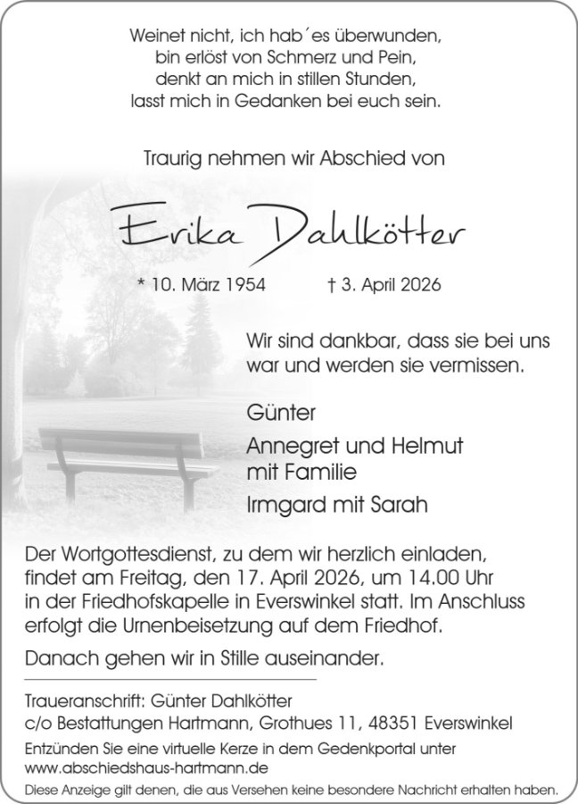 Erika Dahlköttergestorben am 3. April 2026