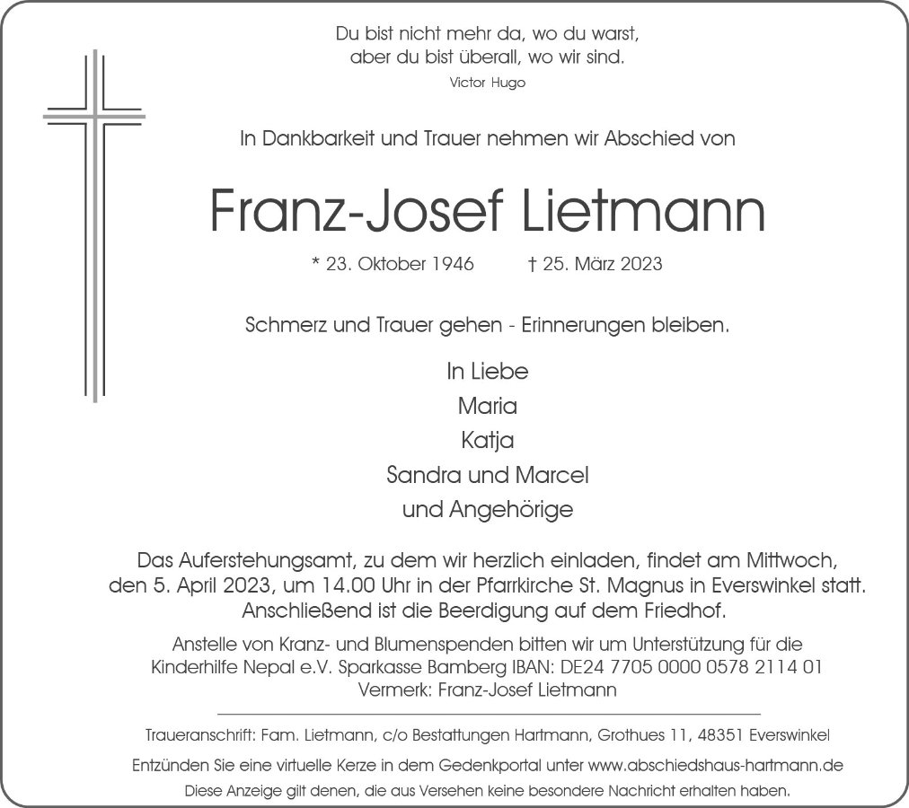 Franz-Josef Lietmanngestorben am 25. März 2023