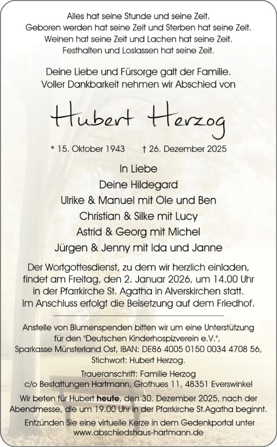Wortgottesdienst, mit anschließender Urnenbeisetzung, St. Agatha Alverskirchen