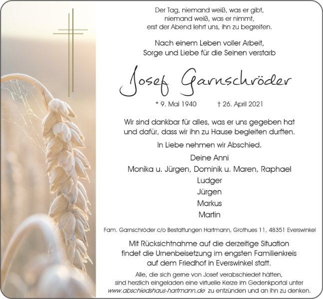 Josef Garnschrödergestorben am 26. April 2021