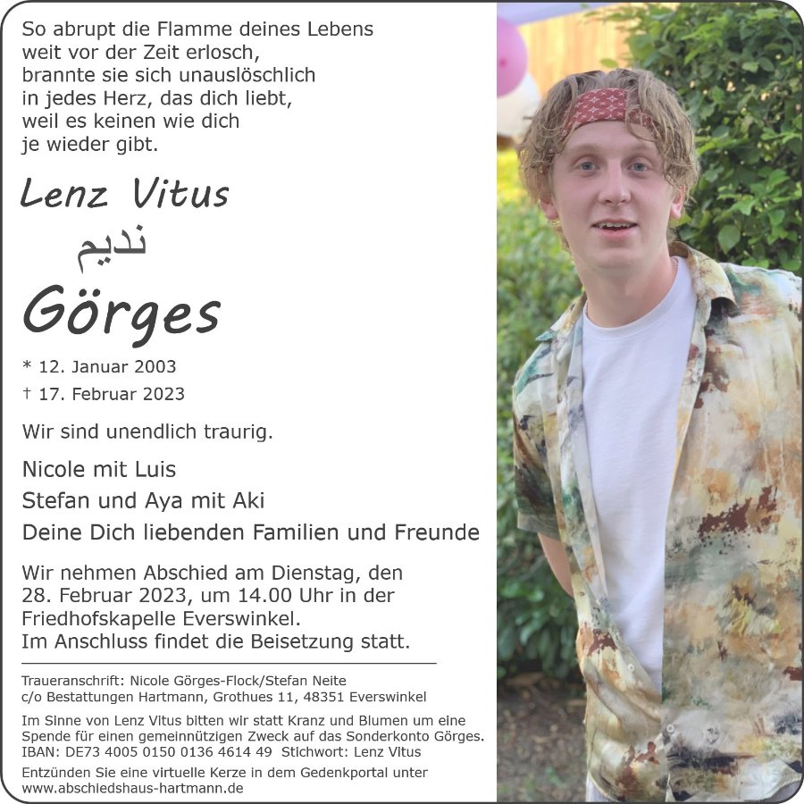 Lenz Vitus Görgesgestorben am 17. Februar 2023