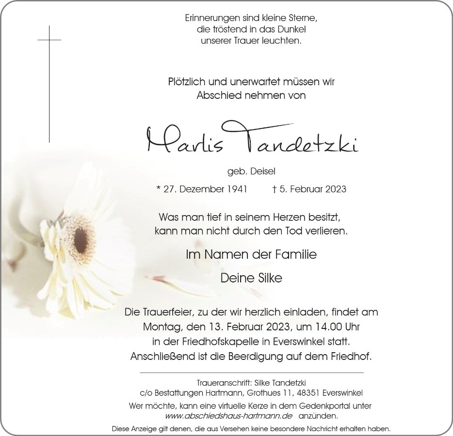 Marlis Tandetzkigestorben am 5. Februar 2023