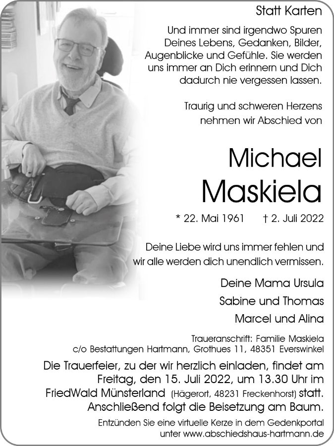 gestorben am 2. Juli 2022 in Everswinkel