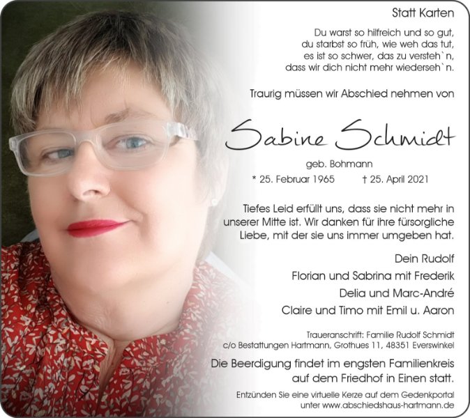 Sabine Schmidtgestorben am 25. April 2021